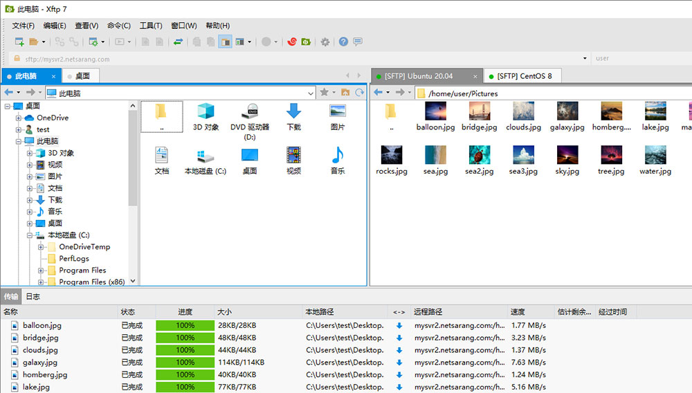 Xftp 7支持主机之间的拖放,因此您可以轻松地可视化文件 文件夹的移动。您可以检查传输窗口,以查看所有传输的进度,并查看您的队列中有什么。根据需要暂停和恢复文件传输。