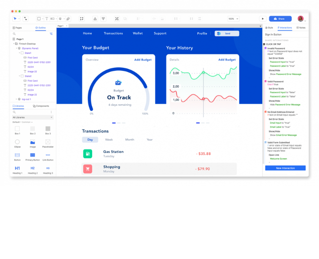 Axure支持各种交互设计功能,例如链接、切换状态、动画效果等,用户可以通过这些功能模拟真实的用户体验,提供更直观的交互效果。